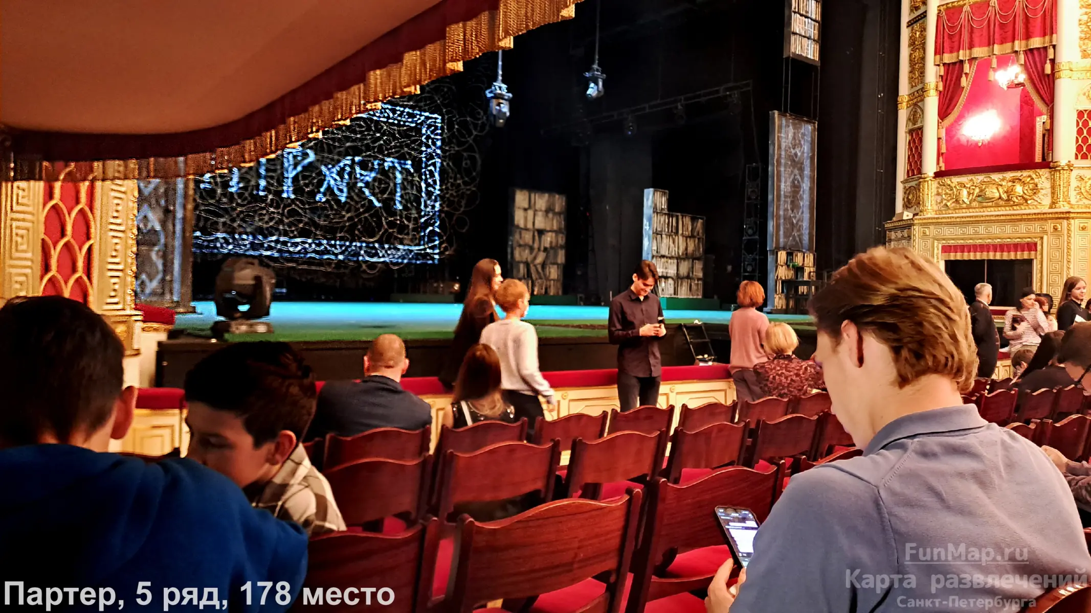 На фотографии можно посмотреть как видно сцену с крайнего места в 5-м ряду (это еще все люди впереди сидят).