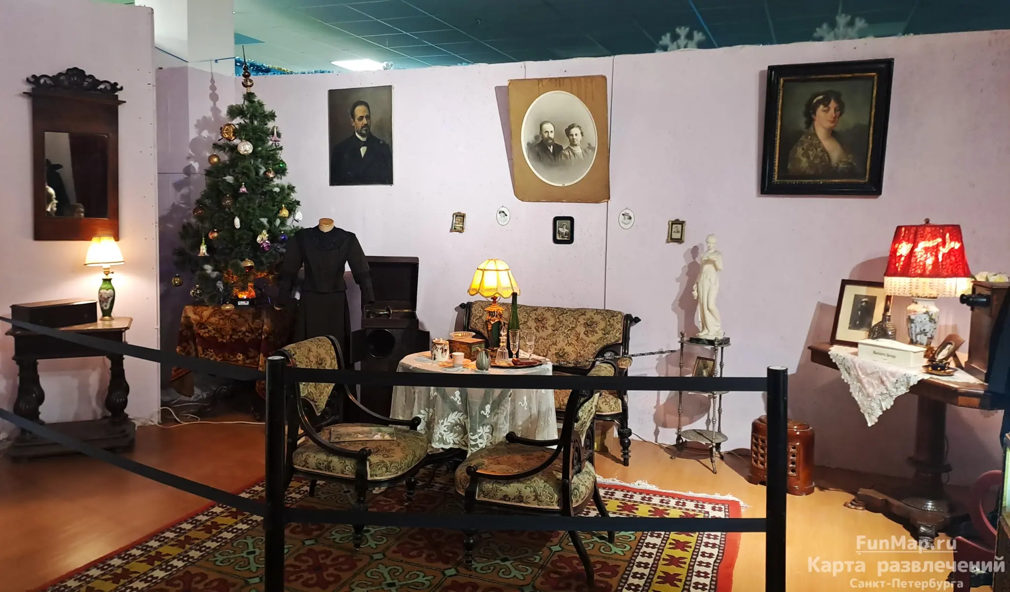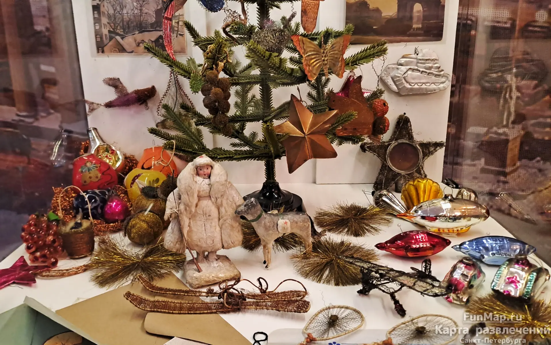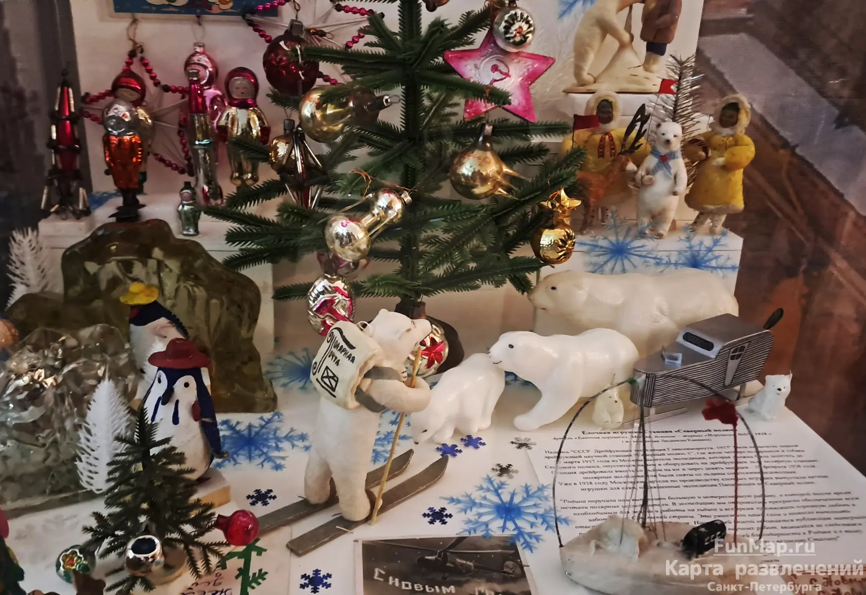 Третий зал посвящен уже примерно середине 20 века. Тут воссоздана обстановка комнаты того периода, а в витринах представлены советские елочные игрушки и новогодние подарки.