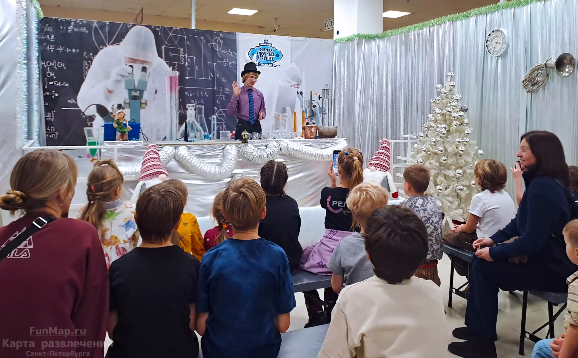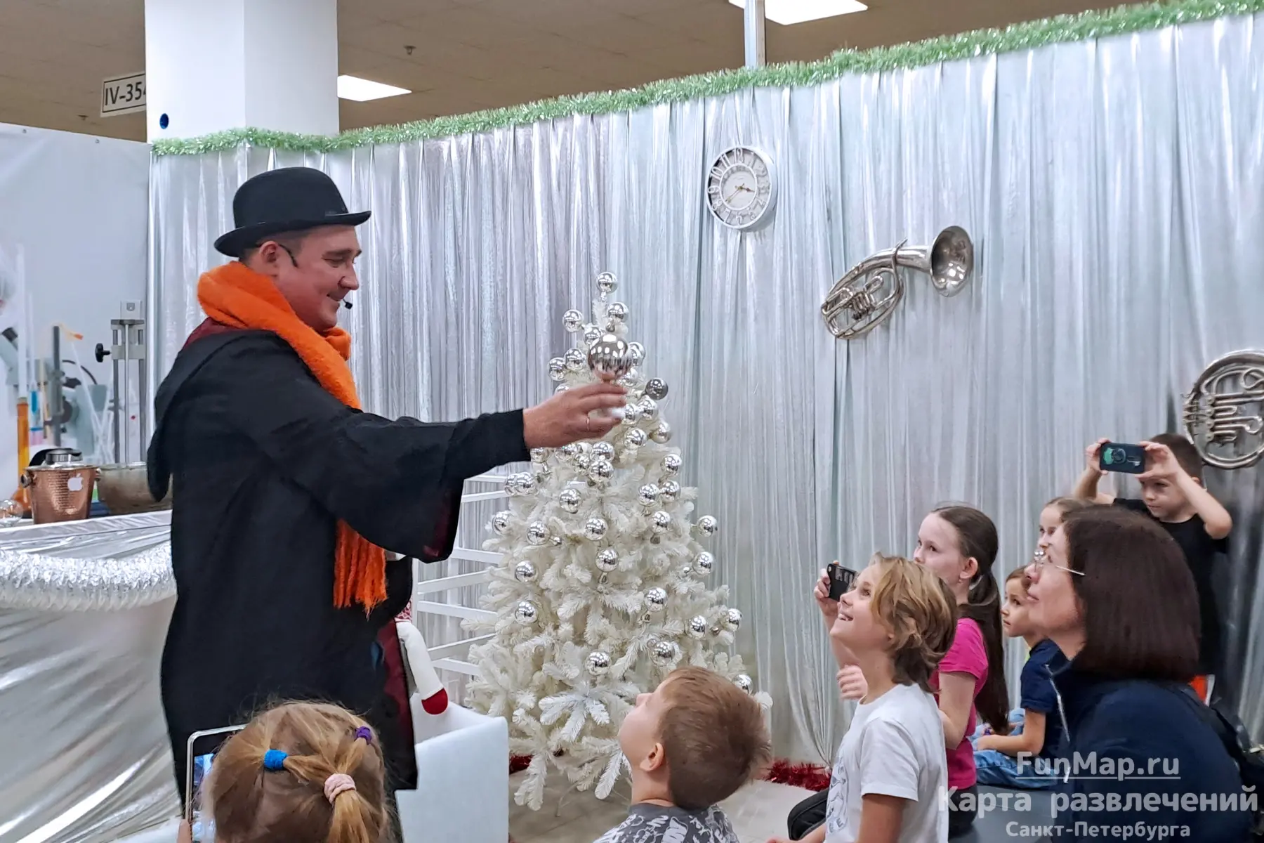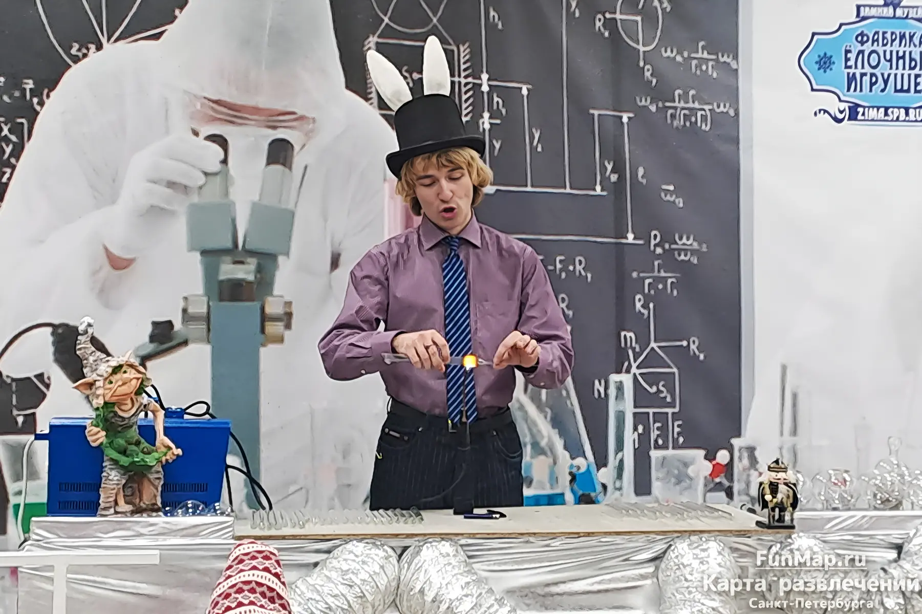 Далее группа переходит в один из самых интересных залов. Экспонатов тут нет, зато здесь можно увидеть, как из стекла выдувают елочные игрушки и как с помощью химической реакции прозрачный шарик становится зеркальным.
