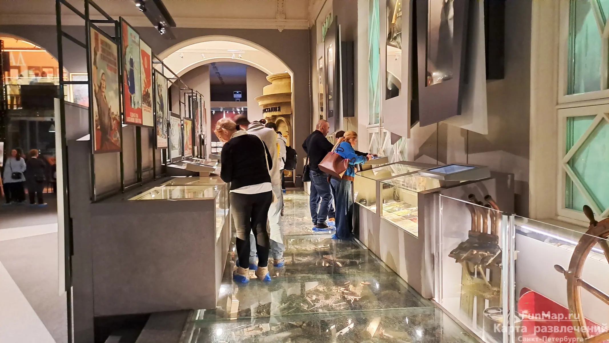Еще есть музейный павильон, в котором проходят временные выставки. Экспозиция "Петроград 1917" с помощью исторических фотографий, газет и журналов рассказывает о Петрограде в 1917 году - о повседневной жизни города, о том как развивались революционные события.