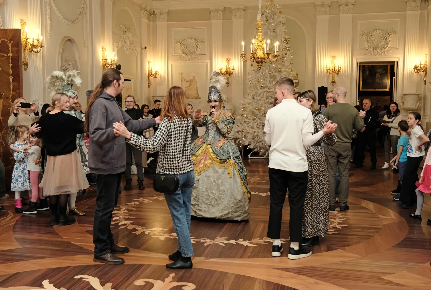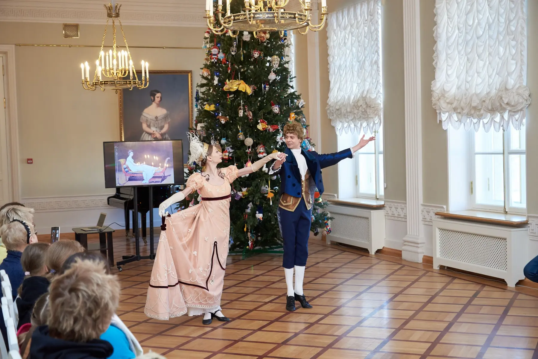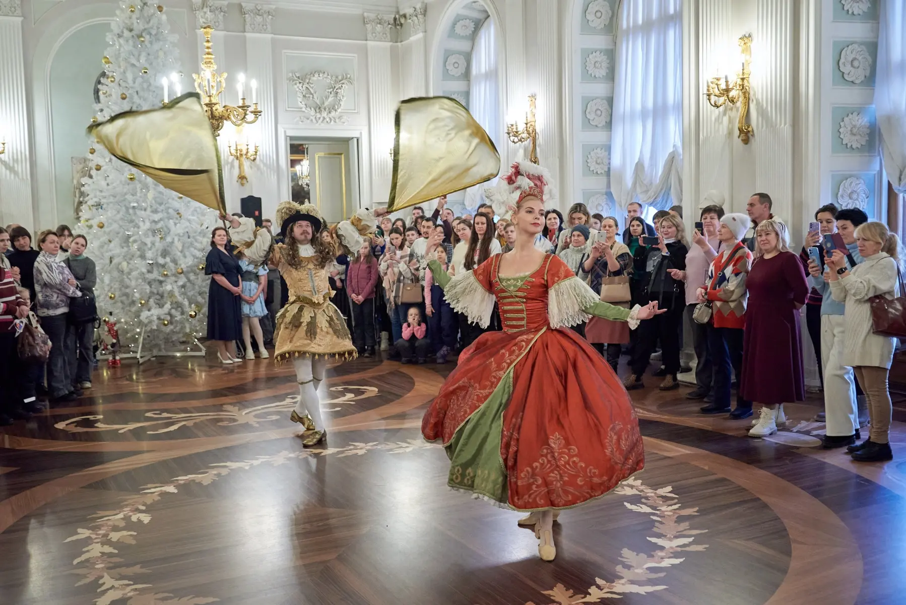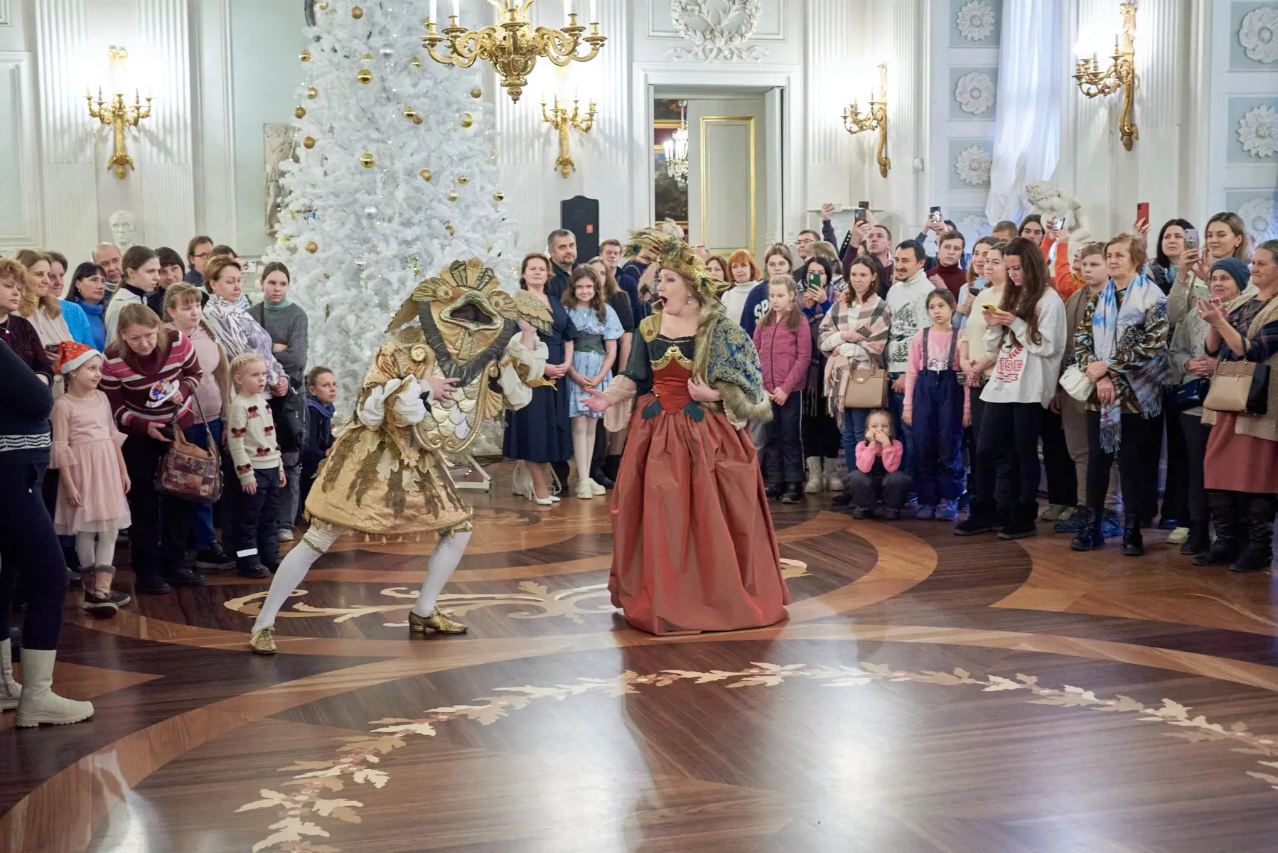 Были на фестивале в последний день новогодних праздников в 2024 году. Билет для взрослого стоил 700 рублей. В эту стоимость включено посещение дворца и все развлекательные мероприятия, кроме экскурсий по дворцу. Пробыв во Дворце примерно с 12 до 17 мы успели: - Послушать рассказ о женской моде пушкинского времени - интересно, с юмором и наглядными примерами. - Поучаствовали в небольшом мастер-классе. - Увидели Деда Мороза - Застали кусочек кукольного спектакля (но были без детей, поэтому надолго там не задержались). - Посмотрели отрывки из балета "Щелкунчик" и услышали любопытные истории о появлении елки в России. - Понаблюдали за шуточным балом с участием зрителей и выступлением артистов; - Послушали замечательный концерт группы "Бис-Квит"; - И конечно полюбовались самим дворцом. Организаторам хочется сказать спасибо - за такую насыщенную программу за адекватные деньги! Представления с элементами оперы и балета, любопытная историческая информация, красивые костюмы артистов и всё это в интерьерах Гатчинского дворца сделали день ярким и насыщенным! Отдельная благодарность "строгой, но забавной" ведущей - она просто восхитительна! Если придираться, то отдельные минусы есть: - программа "Танцуем и поем с Дедом Морозом" - весело, но очень мало (всего 2 песни); - Мастер-класс скорее детский (хотя как раз детей туда не пускали) и мало инструментов и материалов (на 8 человек 1 ножницы и около 5 маленьких листочков со стразиками, которые надо было клеить на веер). - В Арсенальном зале, где был балет, очень мало сидячих мест и вообще места для зрителей (при том что во дворце есть отличный театральный зал и театральное фойе). - Хотелось бы больше представлений для детей, интермедию с Дедом Морозом в самом дворце, а не на улице