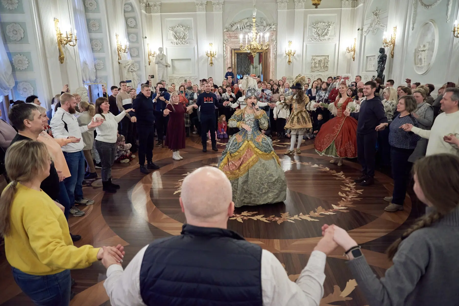 Бал начнется полонезом на музыку Петра Ильича Чайковского, а кульминацией станет Русский танец в исполнении гостей дворца.