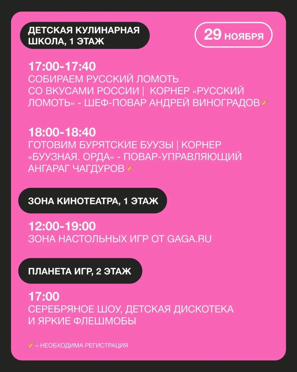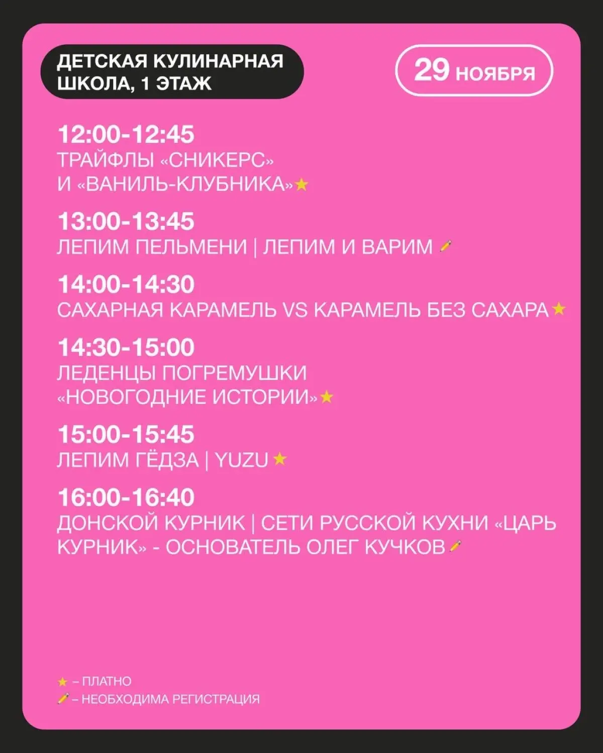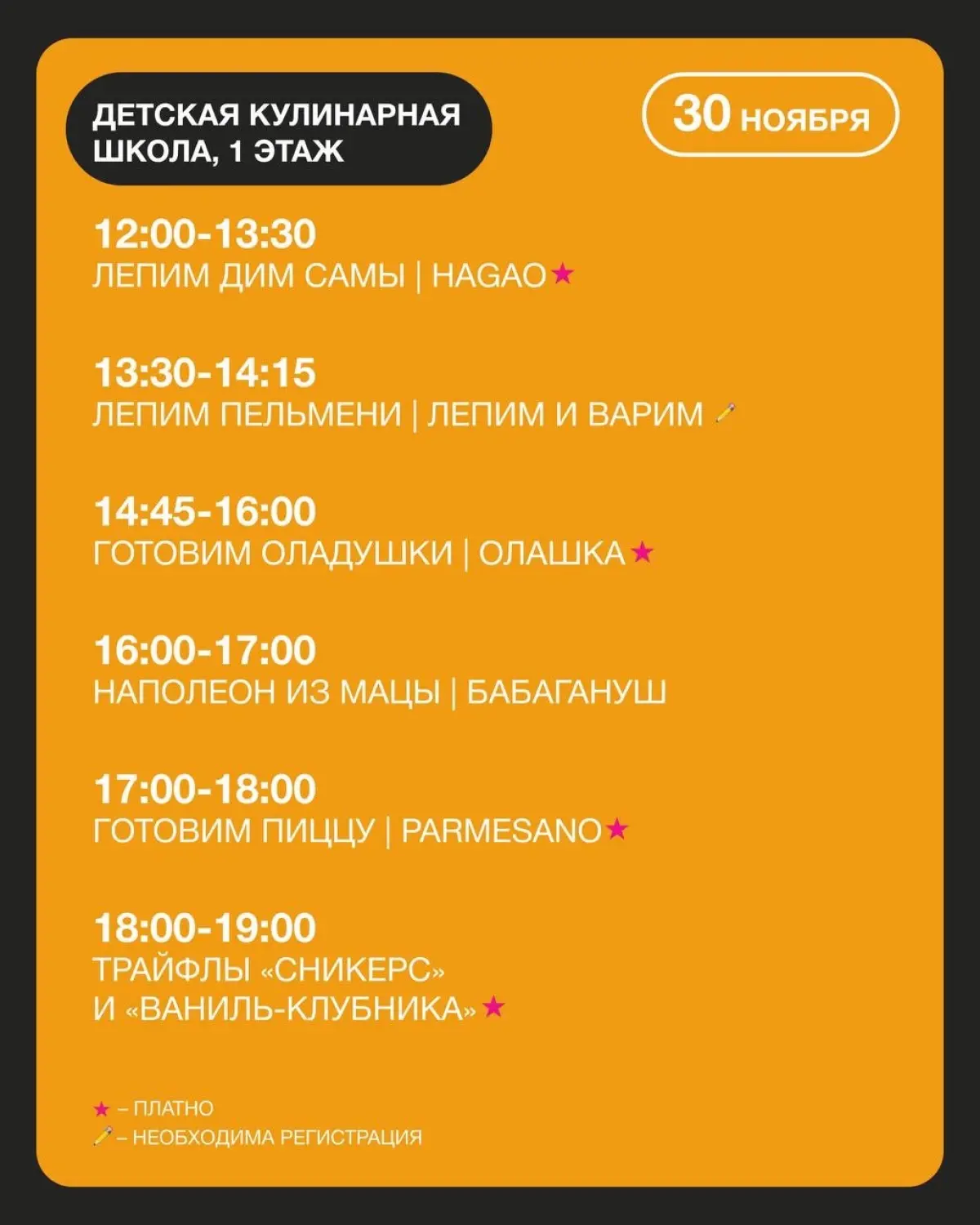 13:30-14:15 - Лепим пельмени (500 руб., по записи)