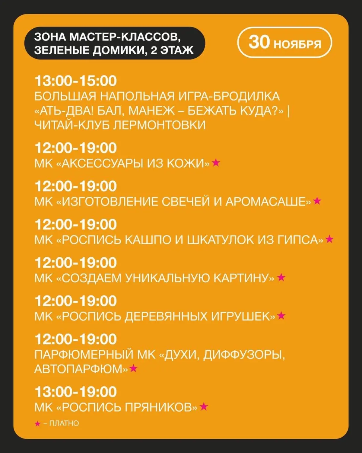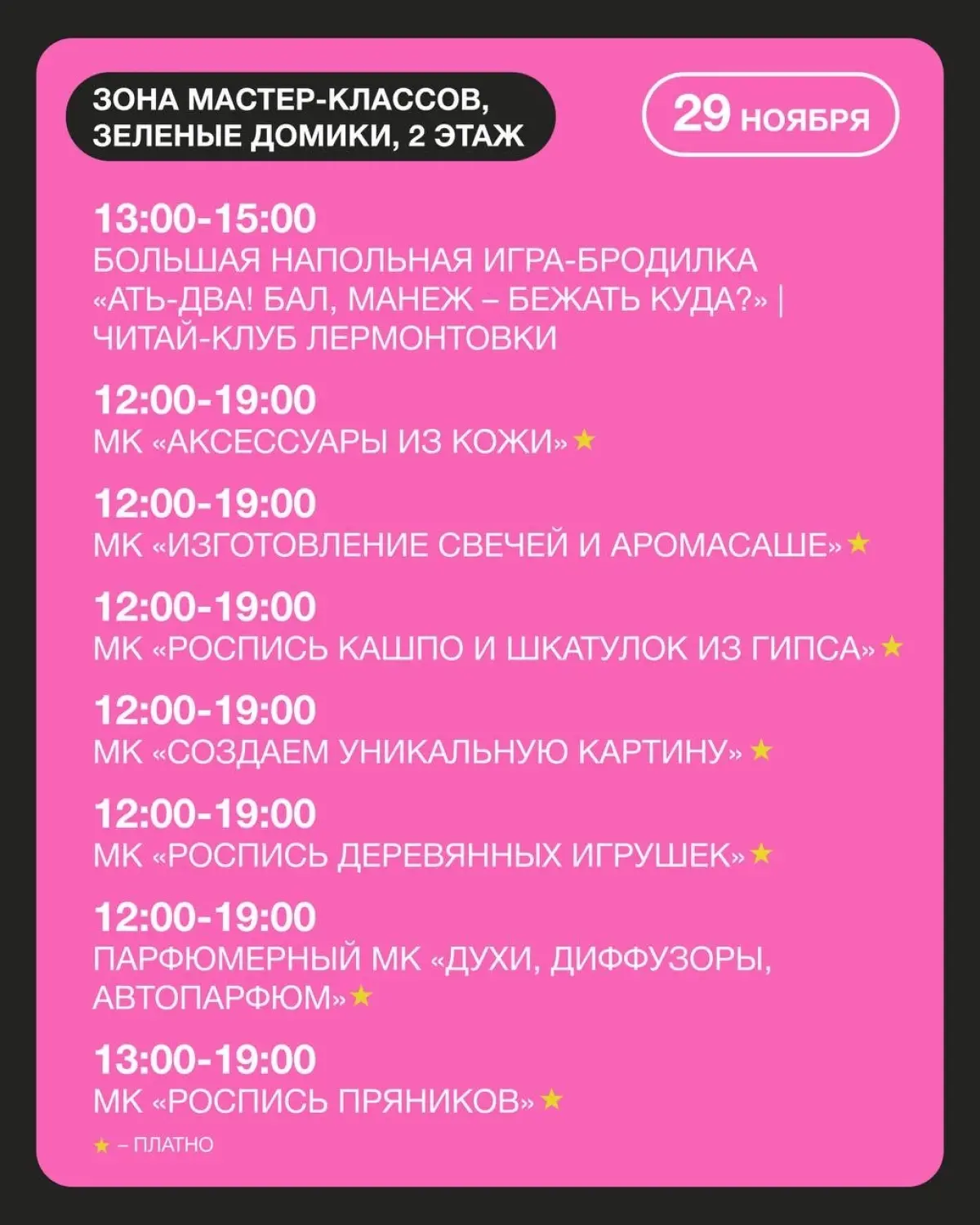 • Платные творческие мастер-классы (2 этаж, "Зеленые домики").