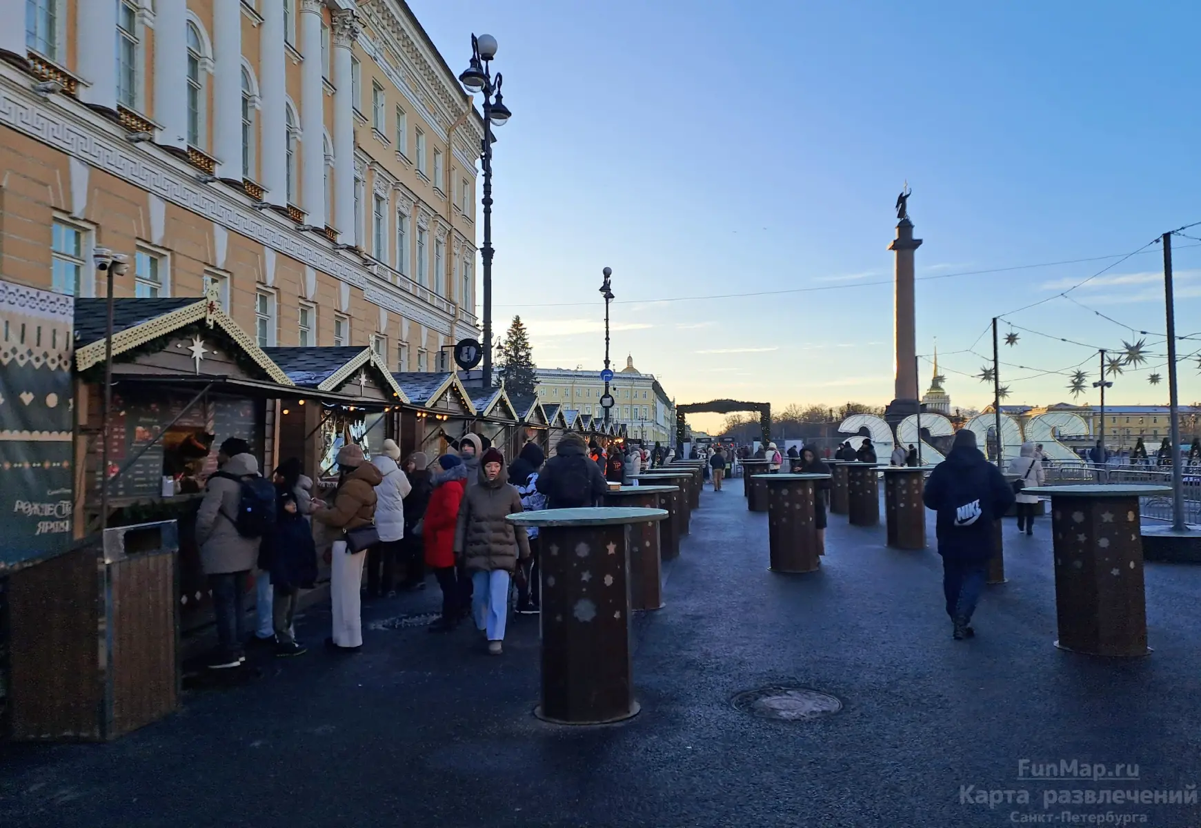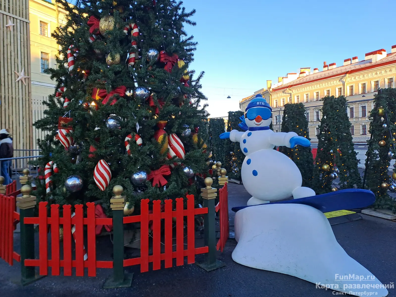 В декабре и в январе в Санкт-Петербурге на Дворцовой площади работает большая Рождественская горка.