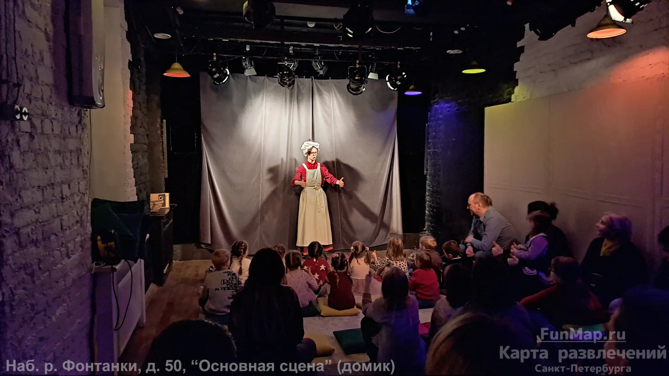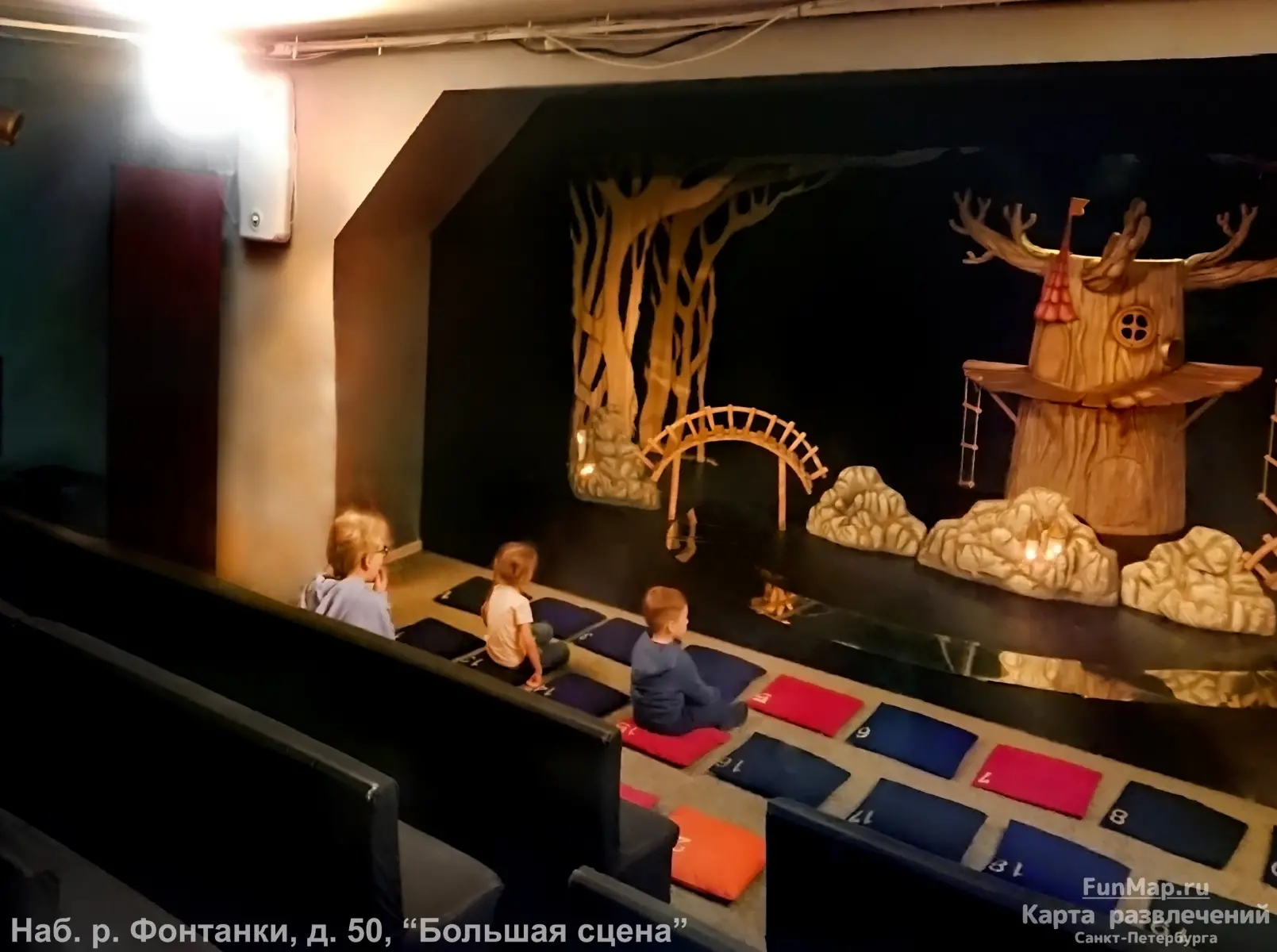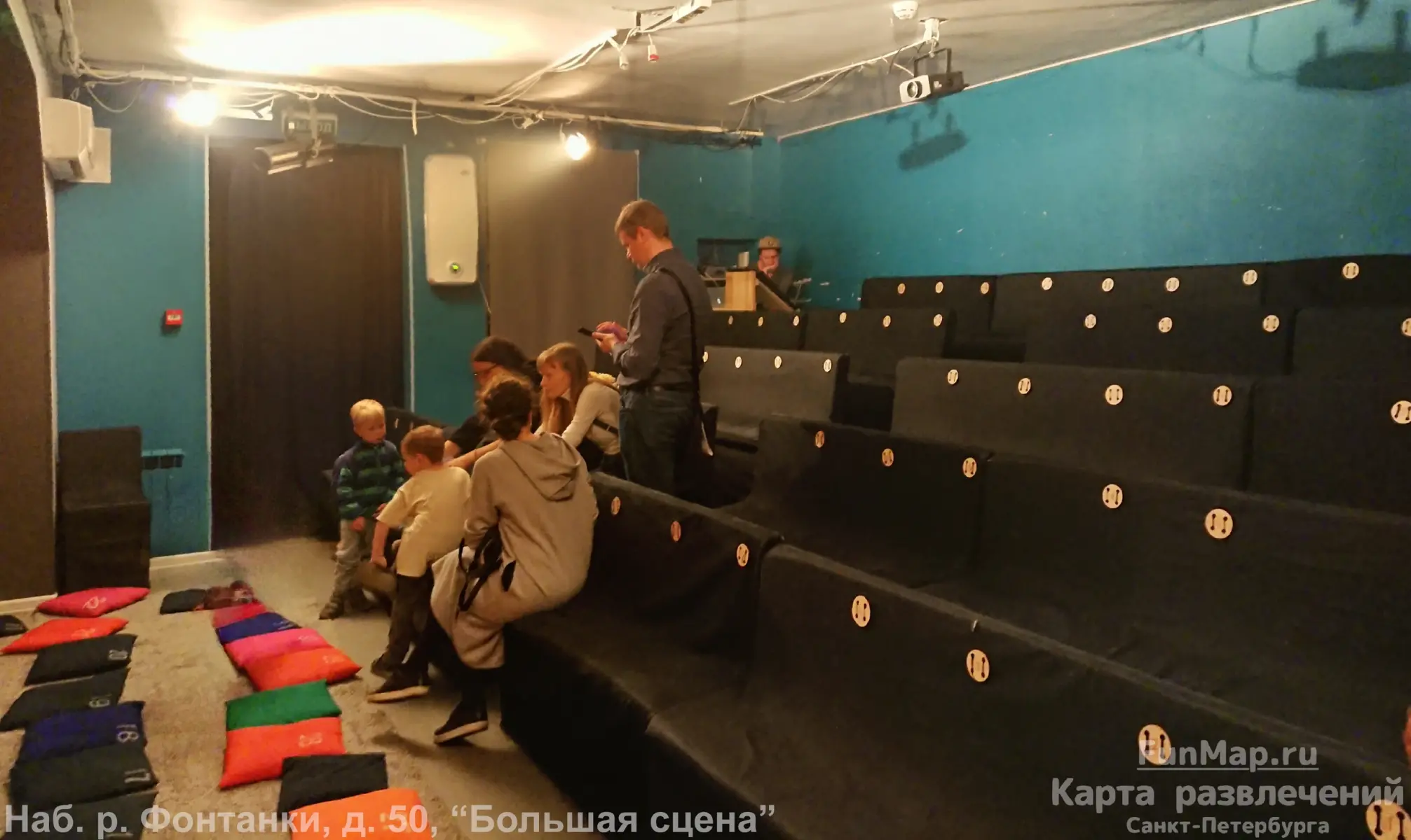 "Основная сцена" на набережной Фонтанки, д.50 - дети сидят на подушках, родители на стульях