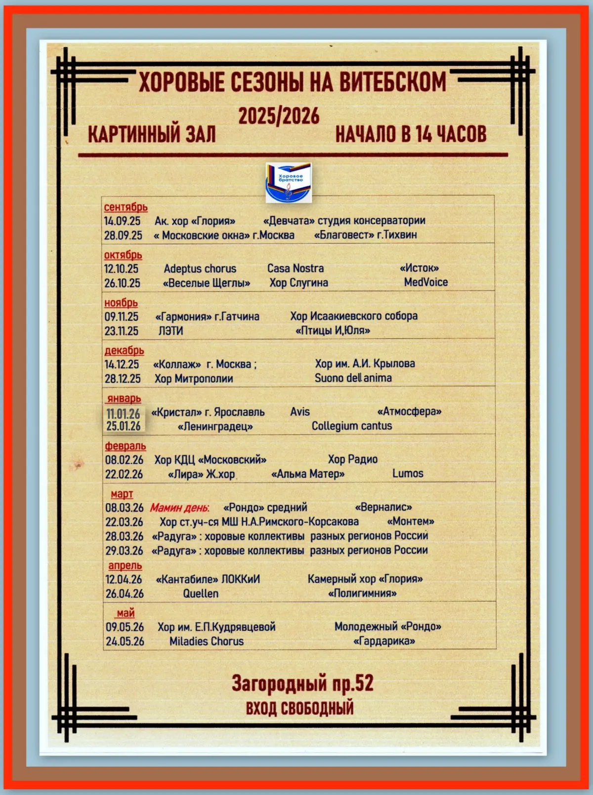 Программа концертов на Витебском вокзале на сезон 2025/2026