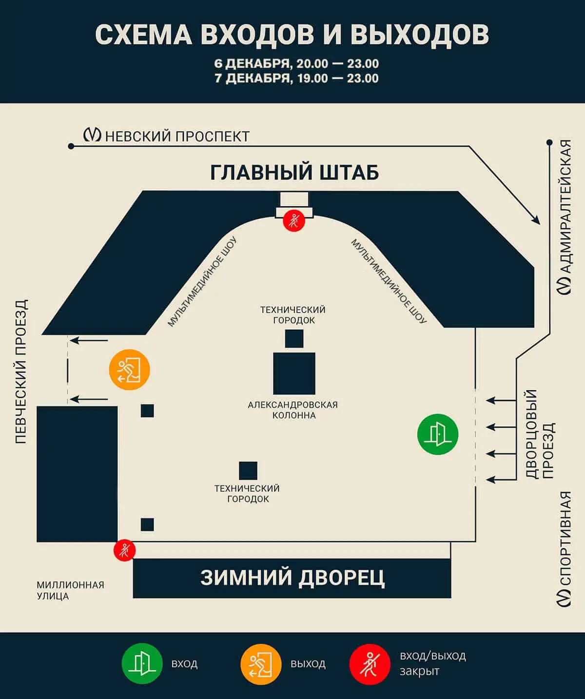 • Проход на Дворцовую через арку Главного Штаба (со стороны Большой Морской улицы) — закрыт!