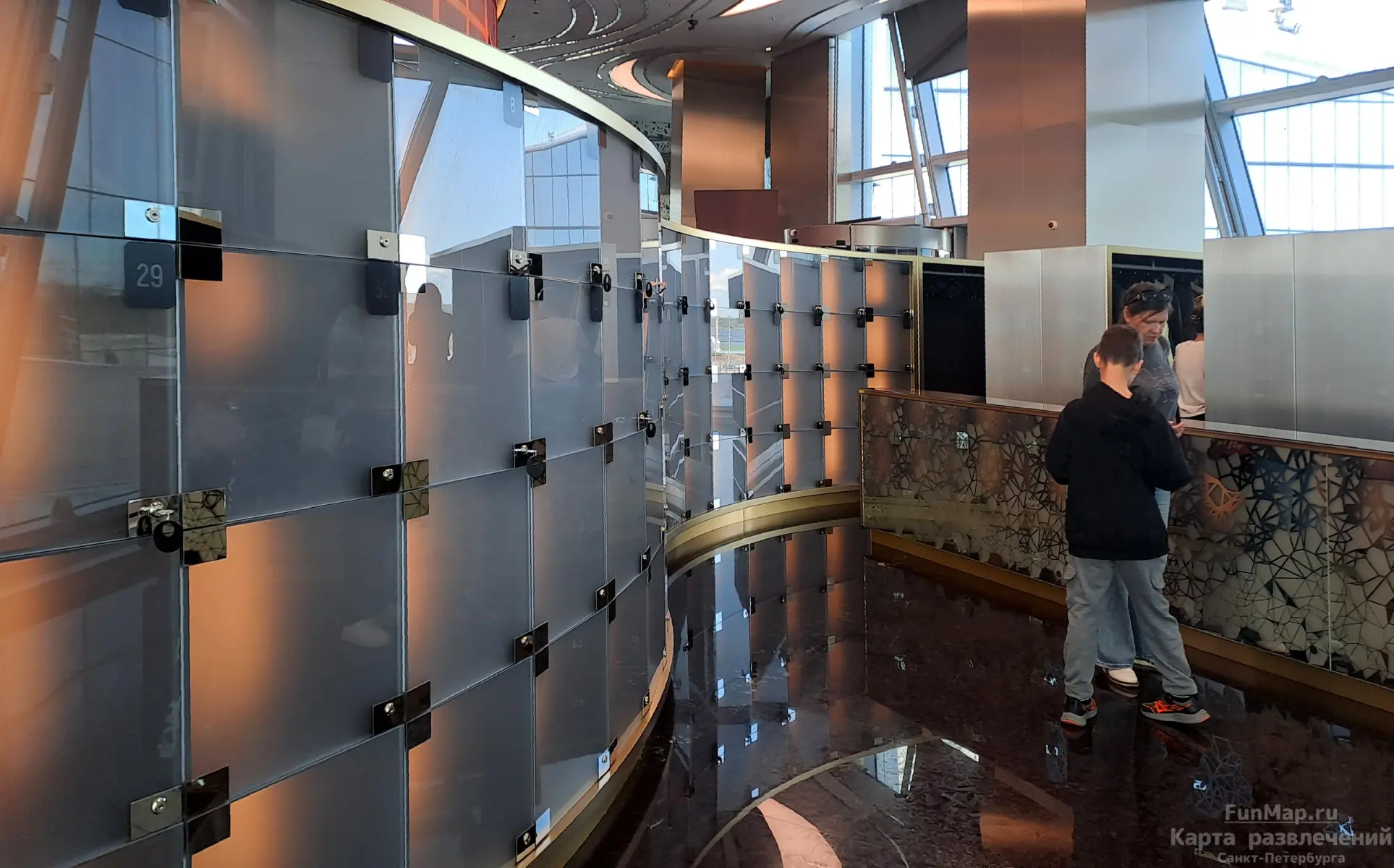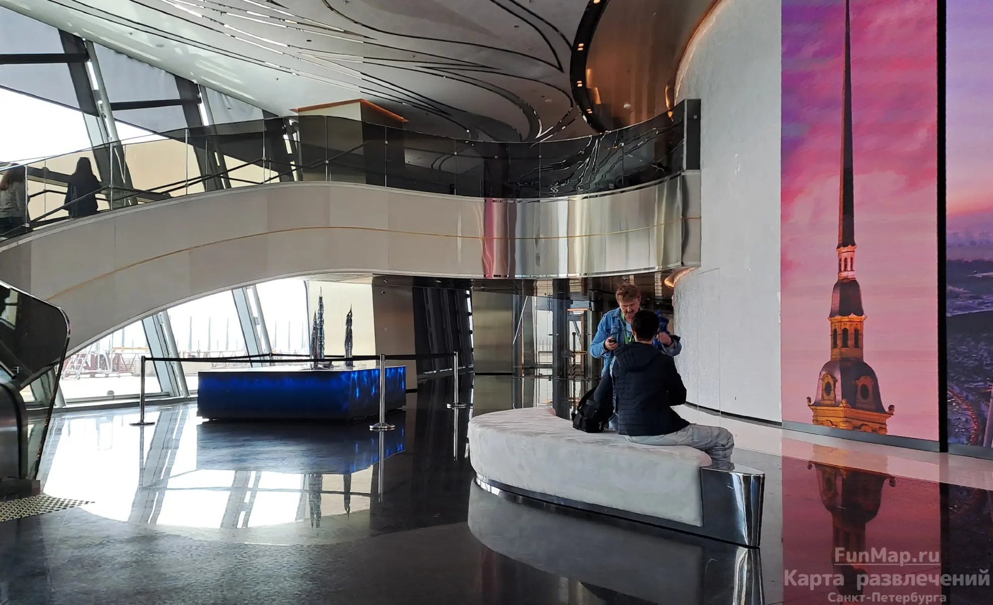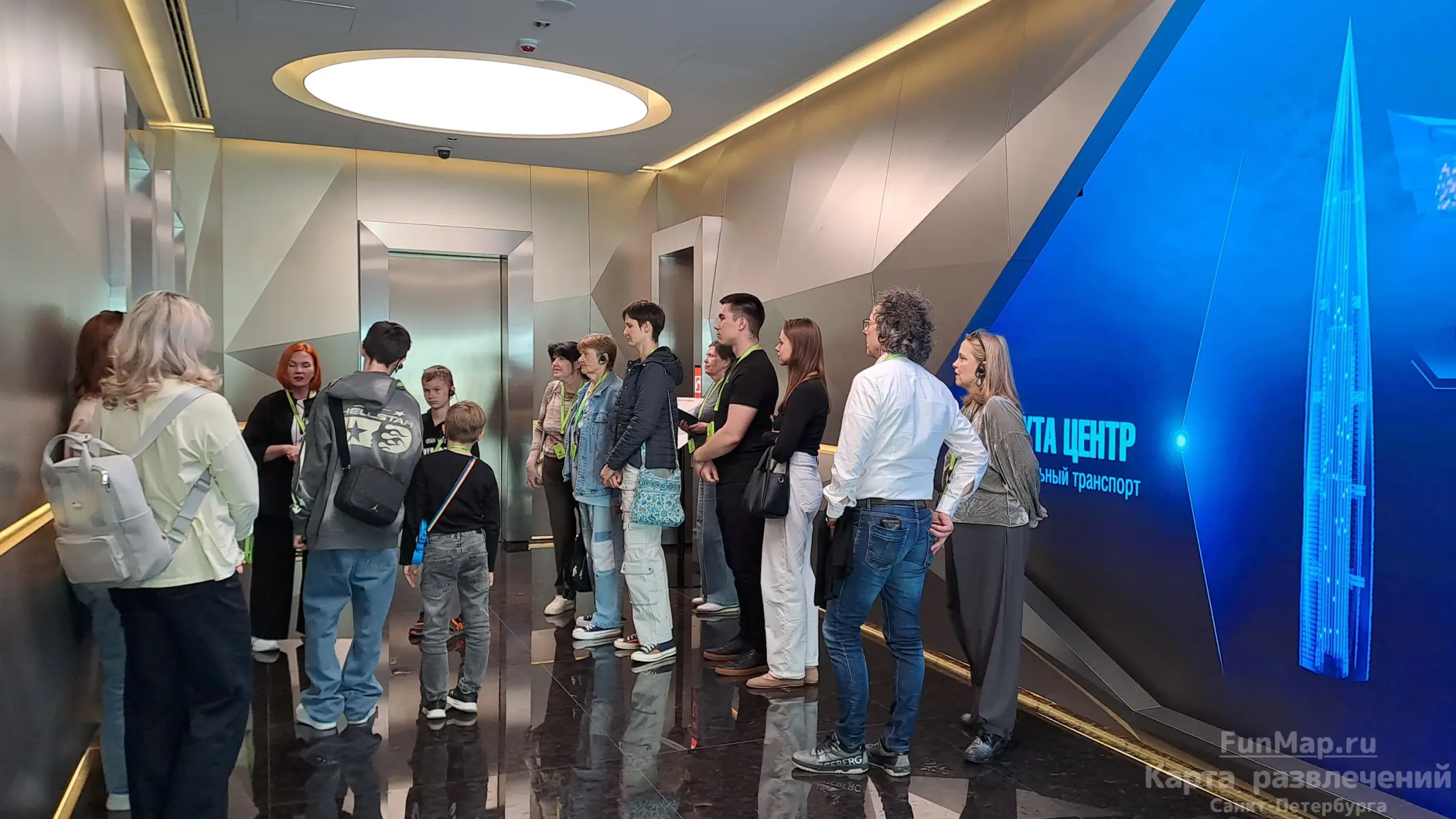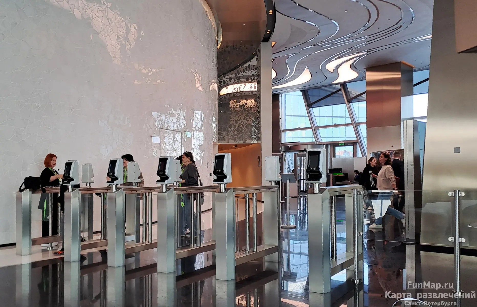 Для экскурсионных групп предусмотрен отдельный вход в башню. Сотрудники «Лахта Центра» попадают в башню со стороны набережной и поднимаются на лифтах с первого этажа, а участники экскурсии заходят через 13 вход и сразу попадают на 3 этаж.