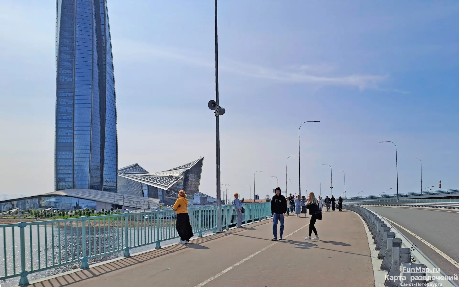 На машине к «Лахта Центру» не стоит ехать, так как с парковкой там сейчас большие проблемы. Как вариант, парковаться где-то в стороне, например еще до моста.