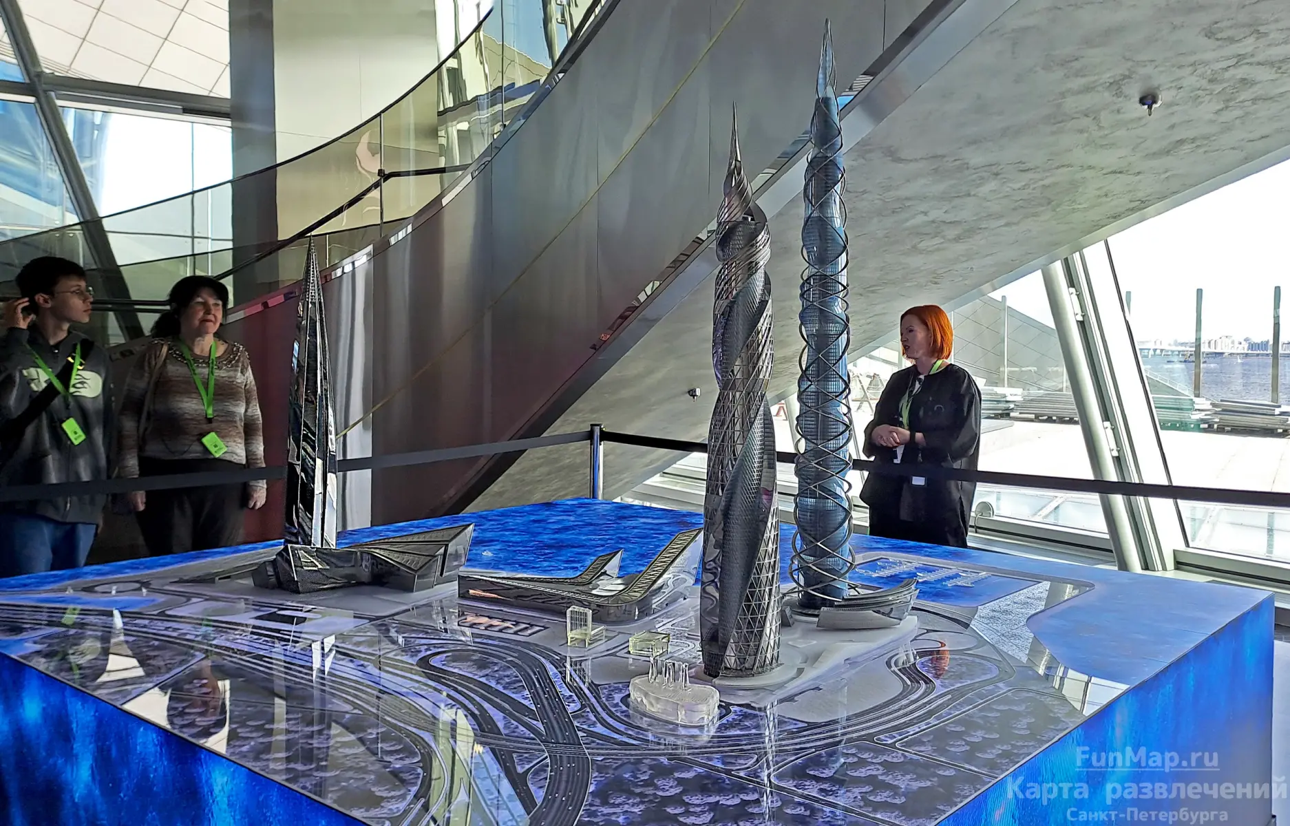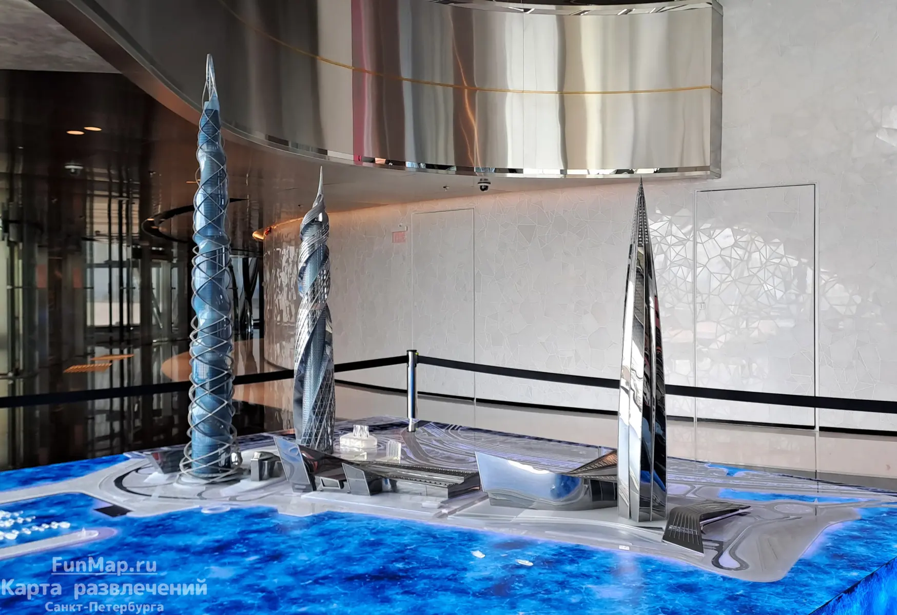 Первая остановка была на 3-м этаже около макета Лахта Центра, на котором также изображены 2 других небоскрёба, которые планируют построить рядом.