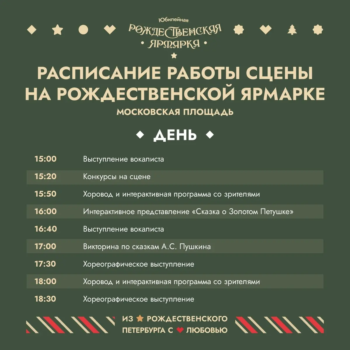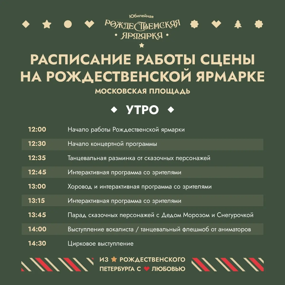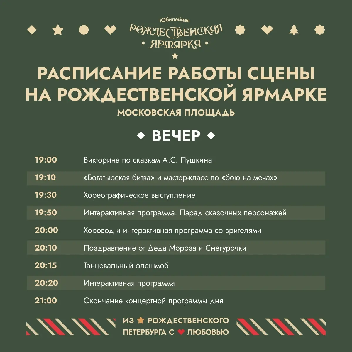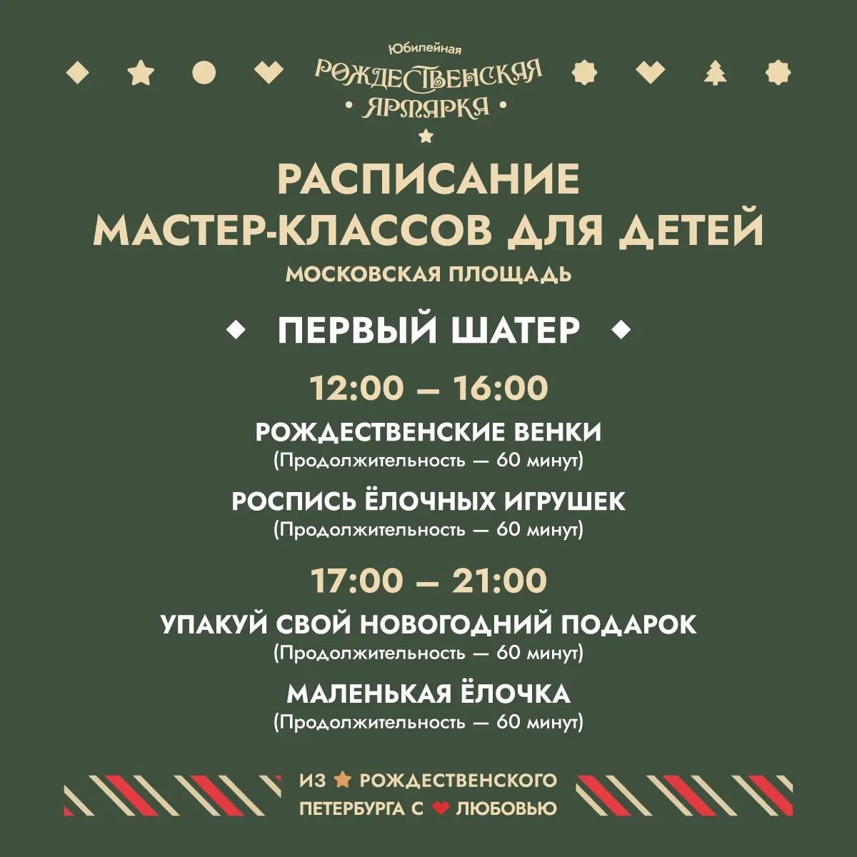 Рождественская ярмарка на Московской площади будет работать с 13 декабря 2025 года и до 11 января 2026 года.