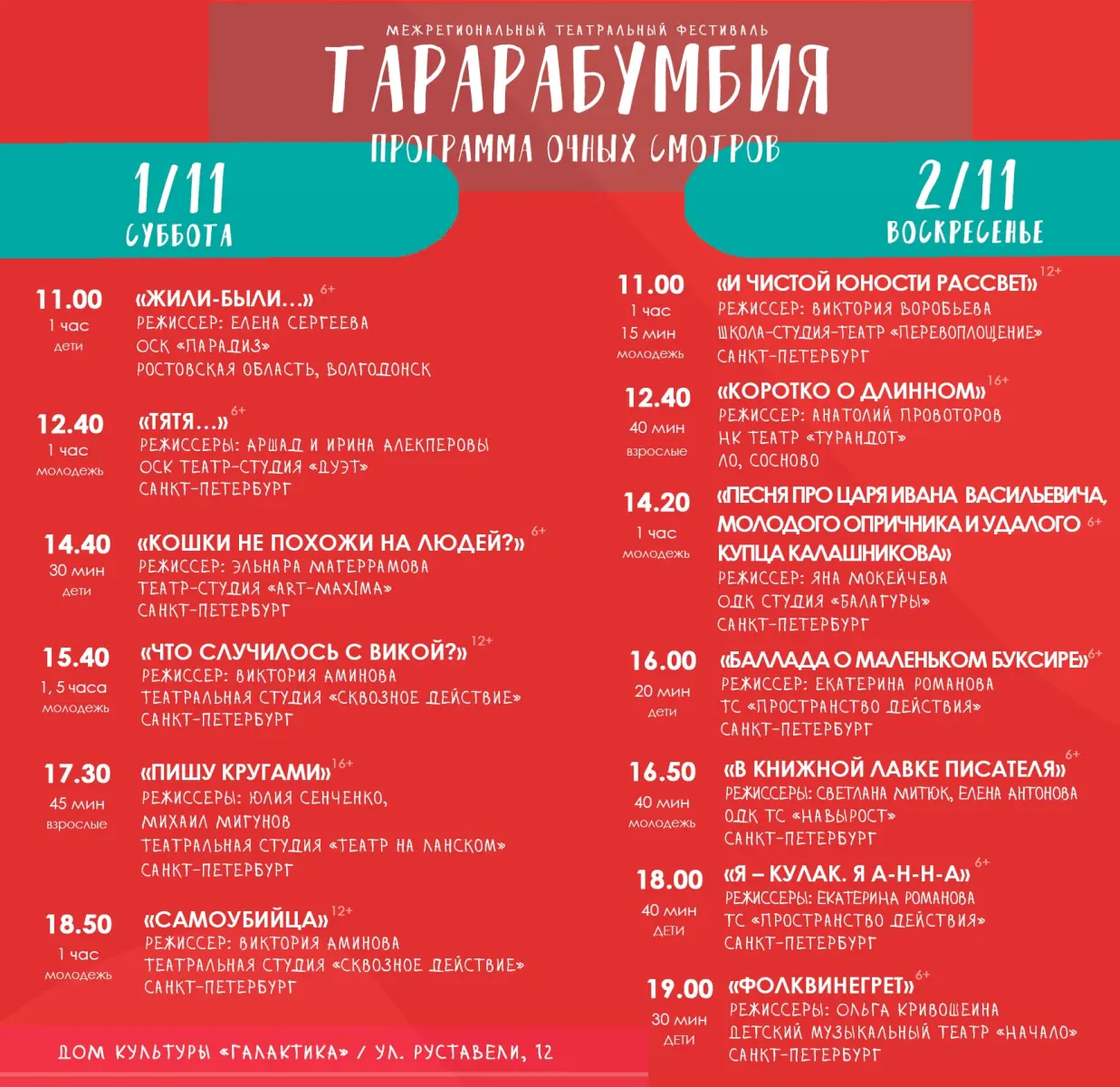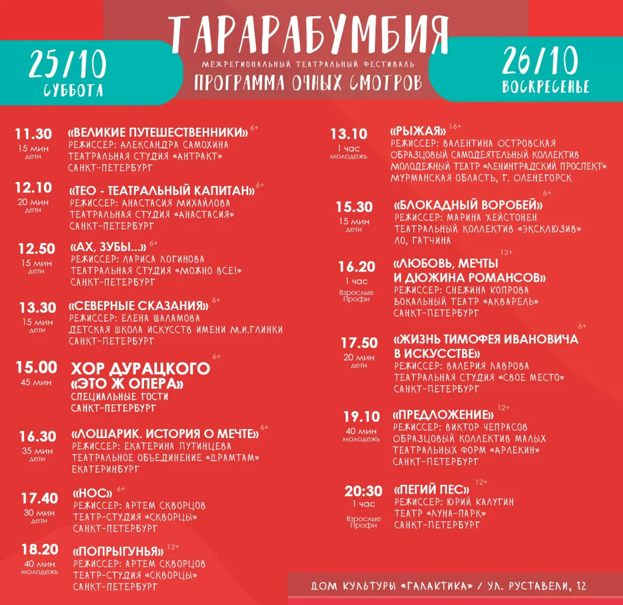 В дни осенних каникул с 25 октября по 8 ноября в ДК «Галактика» будет проходить театральный фестиваль «Тарарабумбия».