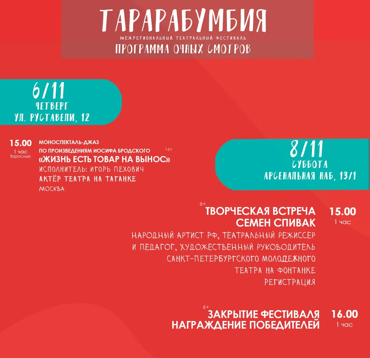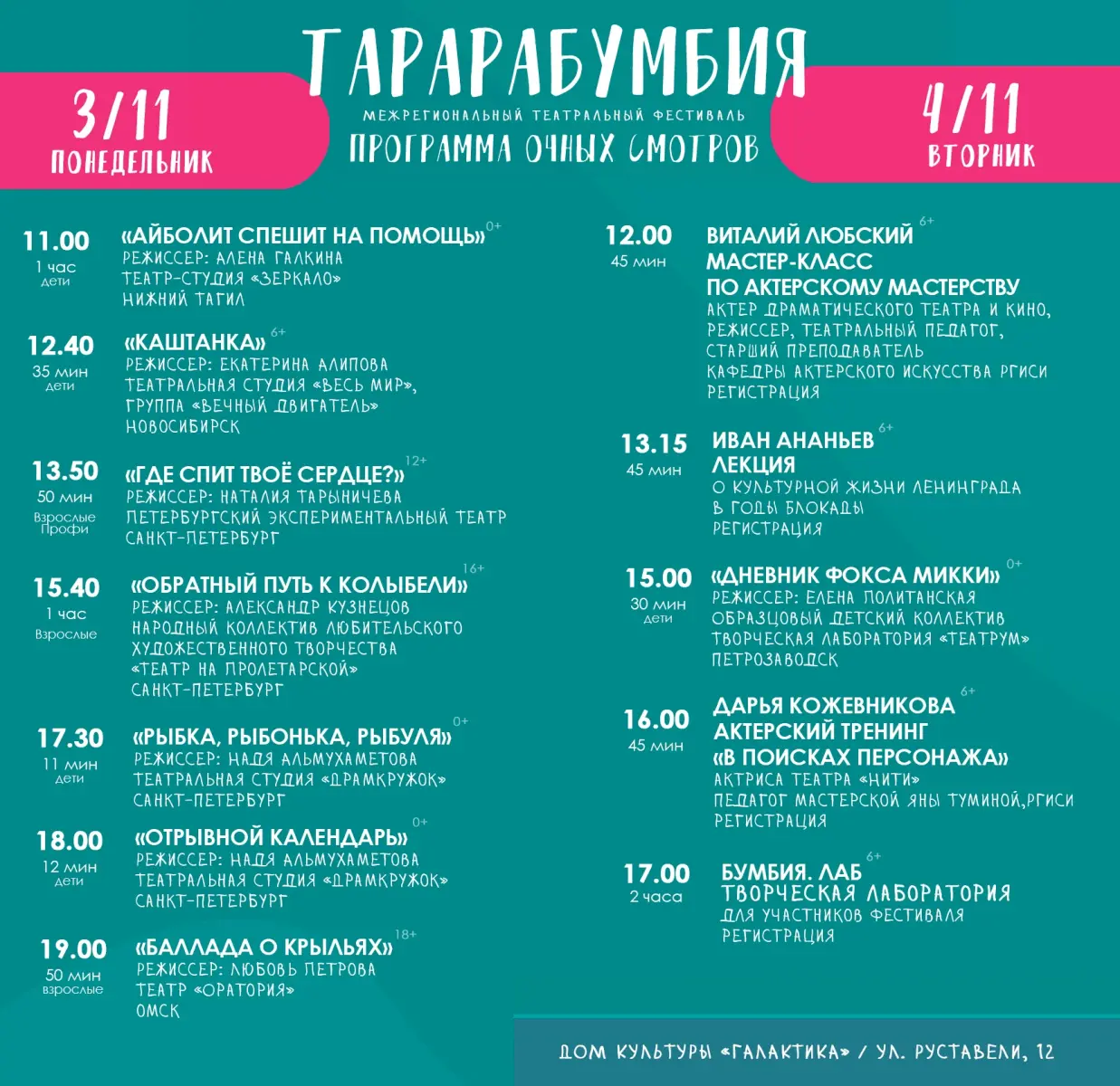 Афиша бесплатных мероприятий фестиваля «Тарарабумбия»